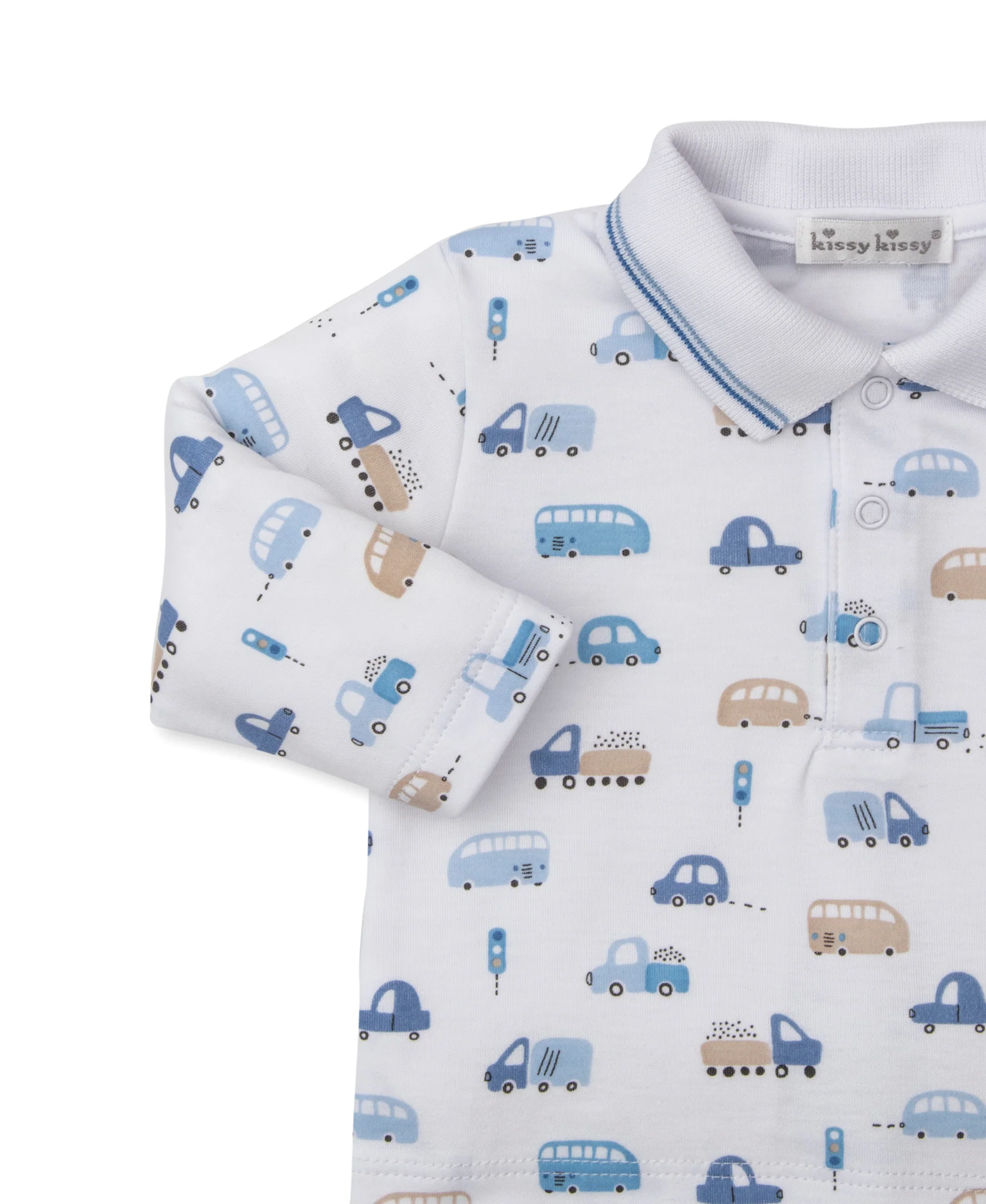 Our irresistibly cozy outfit makes getting baby dressed a breeze. This two piece set comes with a long sleeved stop & go traffic print top, and coordinating pants with an elastic waist for easy on-off. Made with Pima cotton for ultimate comfort.